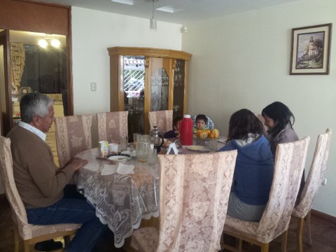 안 주인이 Cuba에서 수녀로 있는 하얀 거탑의 누이가 방문해 Cusco 여행 안내를 하고 있어 우리끼리 조촐하게 아침을 나누었다.