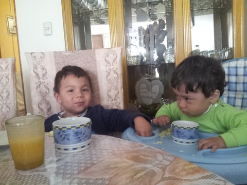 이틀 전 우리 UNSA 공연 사회를 봐줬던 그의 여식 Rosalena는 아침 일찍 두 손주를 아빠에게 맡기고 나갔는데 작은 손주녀석은 뭐가 그리 맘에 안든지 식사 내내 뽀로통한 표정이 압권이다.