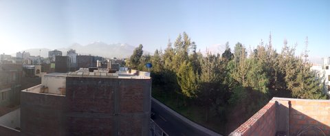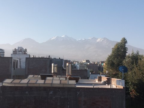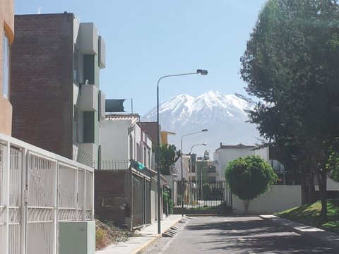 집 앞에는 그 구역 사람들이 거닐만한 작은 공원이 있고 제2도시 Arequipa의 양대 산인 Misti(5,822m)와 Chachany(6,075m)가 눈에 들어온다.