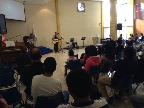 그 선교사님이 오전 중 매주 강당을 빌려 직접 설교를 하는 시간에 여유가 있다 해 주일 오전에 잠시 본인의 창작곡 <그의 이야기> 10분짜리를 선보였다.