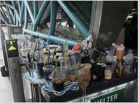 적어도 자기가 이용한 자리정도는, 자기가 먹고 남은 쓰레기정도는 쓰레기 통에 버려주시고,