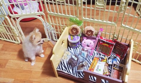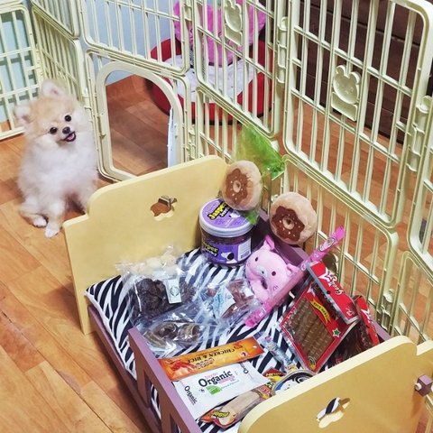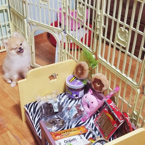 수제간식이랑 소시지 장난감 사주니까 신났는지