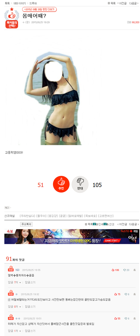 지난판보다가 사진보고 어 몸매좋다 생각했는데 댓글보고 놀라서...