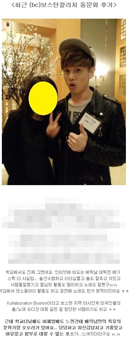 학교에서 이쁘고 훈녀인 애들한테도 나와 대하는게 같아서 뭐 쟤는 어떤 여잘 좋아하는거야 의문만 들고 친구들끼리 모이면 가끔 에릭남st이 좋아할 여자에 대해 떠들떠들임