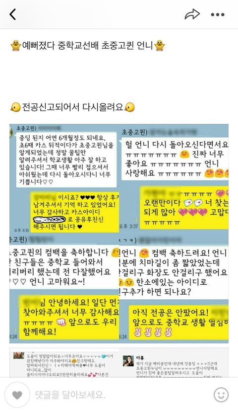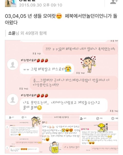 공부하다가 심심해서 카스 깔고 구경하다가 발견ㅋㅋㅋㅋㅋㅋㅋㅋㅋㅋ 내년에 03이 중1 인가봄? 03년생을 위해 언니가 왔따!!!! 이런거 ㅈㄴ 많음ㅋㅋㅋㅋㅋㅋㅋㅋㅋ 중학교 치마길이 안걸리기, 화장품 잘숨기기 뭐 이딴ㅋㅋㅋㅋㅋㅋㅋㅋ 지가 일인다역으로 단톡만들어놓고는 코칭이라닠ㅋㅋㅋㅋㅋㅋㅋㅋㅋㅋ 그래봤자 인터넷 훈녀생정, 뷰티팁 짜집기ㅇㅇ 심지어 물감으로 염색...... 애잔쓰....