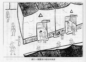 사거리 같은 데로 가니까 나처럼 끌려온 여자들이 많았다. 동네에서 마구잡이로 처녀들을 끌고 온 것 같았다. 그 때 나는 검정옷에 하얀띠를 두른 세라복 차림에 머리를 양가락으로 묶고 있었다.