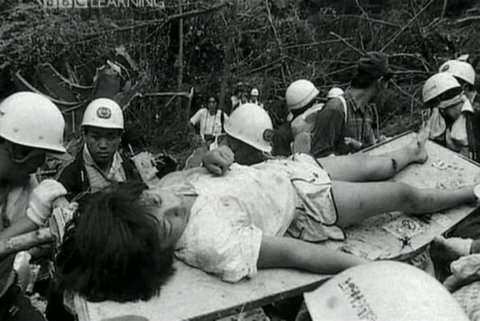 당시 주간 아사히의 표지. 주인공은 당시 생존자 4명 중 한 명인 카와카미 케이코.