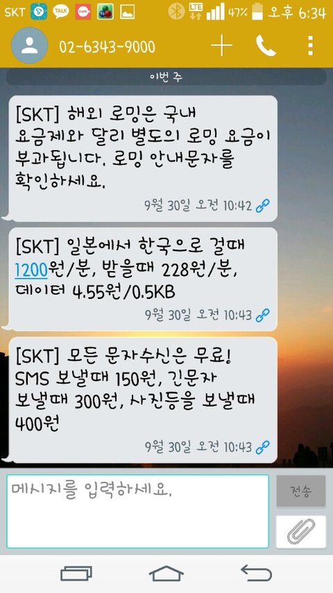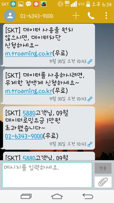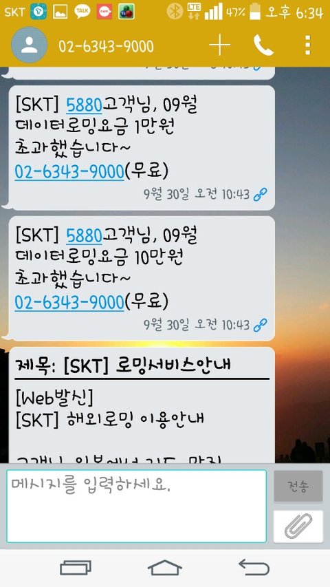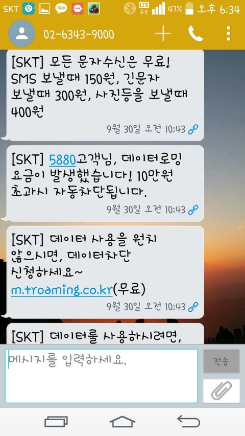 데이터 로밍을 수락해서 안내차 보내는 메세지구나 했죠~