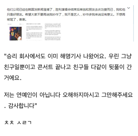 승리와 스캔들난 대만여자의 웨이보 해명과 진실