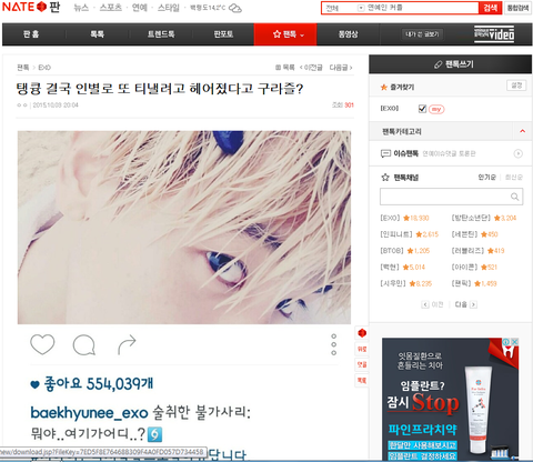 ㅁㅊ카이악개캡쳐 백현팬이 올림ㅋㅋㅋㅋㅋ