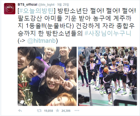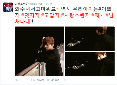 뿐만 아니라 빅히트에서는 방송이 끝날 때마다 귀여운 인삿말과 함께 #오늘의방탄을 올려줌