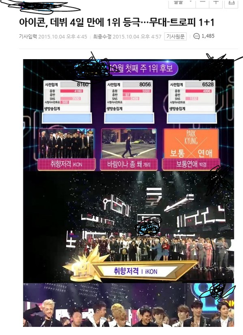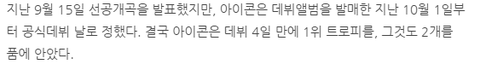오늘 저녁 인가에서 아이콘이 일위를 하고 이런 기사가 남.