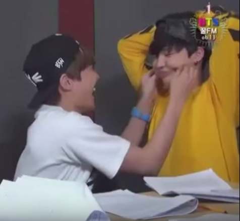 이건 방탄 1주년 꿀fm 영상 때지민이가 옐로카드 할 때 제이홉이 귀여워ㅓㅓ 막 이러면서 볼 꼬집어주고