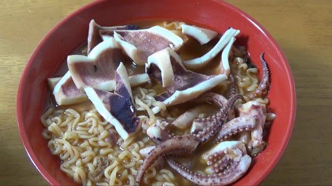 이번에는 오징어를 통째로 라면에 넣었습니다. 국물맛이 심해의 바다처럼 깊은 맛이 나네요~ 강추입니다!!!! 요즘 오징어철이라 가격도 싸니 지금이 기회예요!!!!! + +