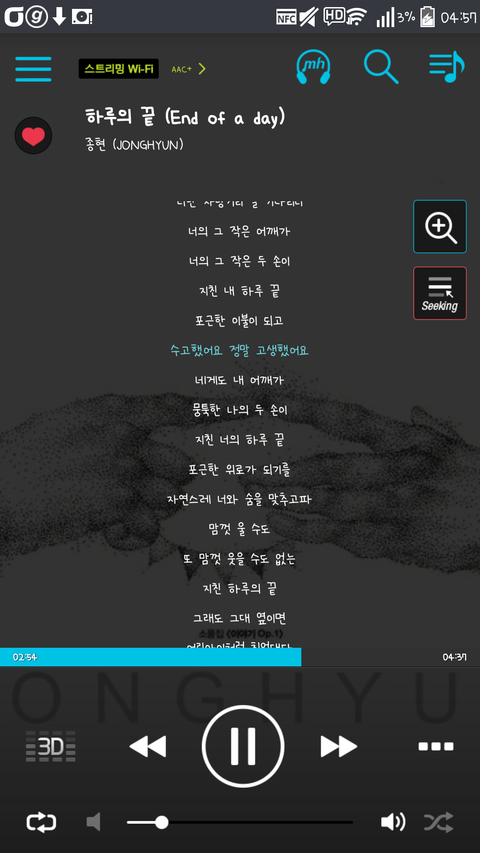 2시 34분.. 진짜로 맨 처음에 나오는 종현 특유의 나긋나긋한 목소리로 전화하듯이 말해주는데 그거 듣고 혼절할 뻔 함 진짜.. 매일매일 듣는 노래 중 하나. 진짜로 동창회 가서 친구들이랑 거하게 먹고 이야기하는 듯한 느낌.