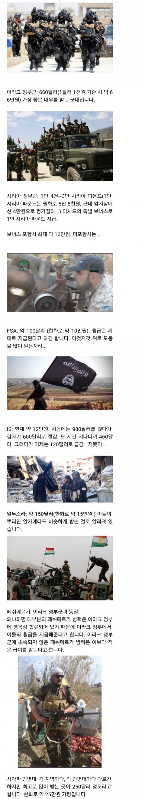 지금 중동에서 전쟁중인 세력군인들의 봉급..