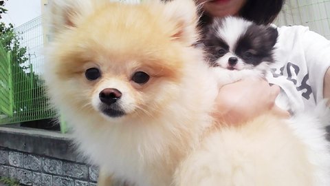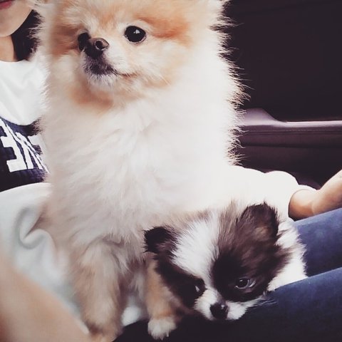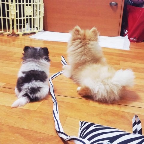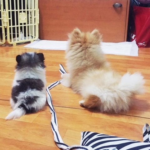 크림이랑 옆에 사이좋게 앉아 강아지 친구들 구경 중!