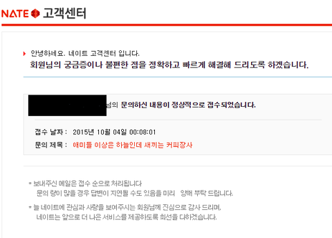 접수날짜보이지? 4일에 신고했고 지금 6일인데 네이트에서 신고메일 아직 확인도 안함