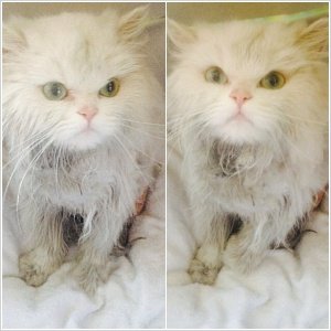 굴하지않고 다시 목욕시키는데 털이란 털이 모두 뒤엉켜있어서 목욕이 불가능