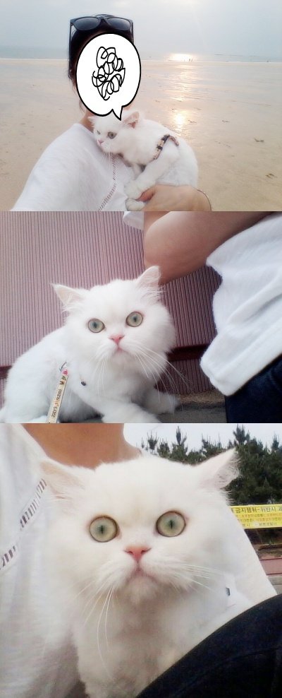 바다 도착하자마자 깜놀해선 계속 저표정 아니면 나한테 발톱을 세우고 엉엉