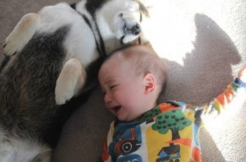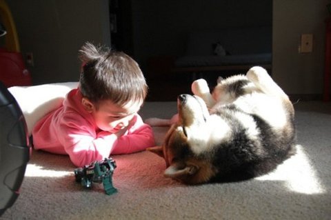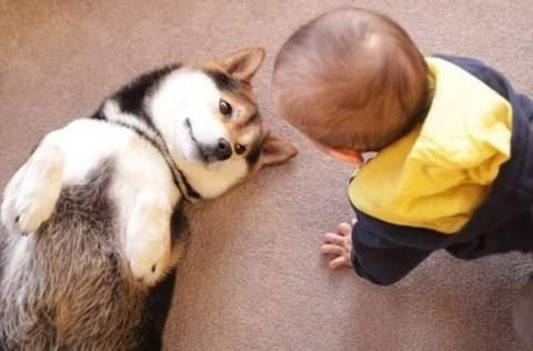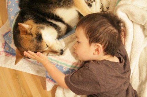 성장기를 함께보낸 개와 아기
