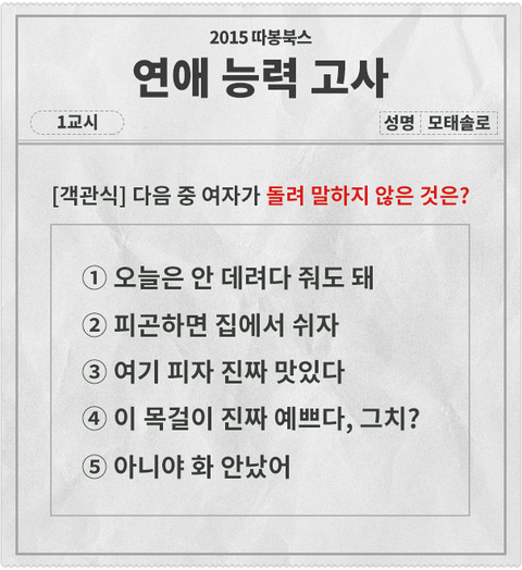 아니 무슨 언어영역도 아니고 연애에도 오답노트라니....그런데 이 멍청아 오답노트가 진짜 필요한 것이 바로 연애임을 몰랐느냐.응 정말 몰랐다. 나는 몰랐다.그래서 틀린 문제 또 틀리고 아무리 다시 연애 시험을 치뤄 봐도 매번 낙방. 또 낙방.아 싫다 싫어 꿈도 사랑도.