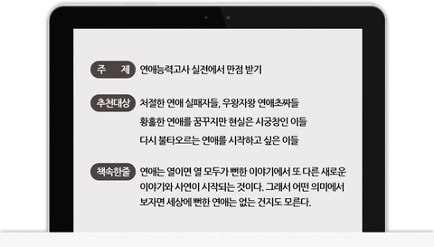 연애에 벼락치기가 가능하다면,그래서 타고난 연애날라리들만 편하게 사랑을 노래한다면,철저한 예습과 복습으로 인한 사랑꾼이 되기 위해 불철주야 노력하는 ‘노력파’들이 너무 불쌍하지 않은가.세상은 공평해야 한다. 사랑에 있어서도 그래야 한다.