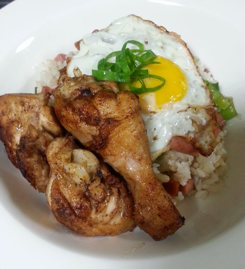 집에 볶음밥하는데밥이 쥐꼬리만큼 남았더라고요 . 그것만먹으면 양이안찰것 같아서 닭볶음탕하려했던 닭몇점 꺼내서 팬프라이 했어요