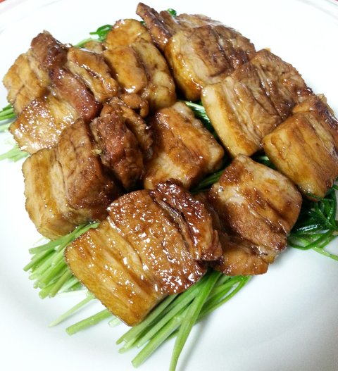 이건동파육인데요 부추랑 같이 드시면 매우잘어울려요 청경채에 보통드시는데 저는청경채의 특유의 수분많은 채소를 별로좋아하지않아서..