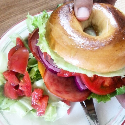 이건 베이글샌드위치. 패티가 안들었으니 샌드위치가 맞겠죠? 채소가 이번에도 듬뿍 .