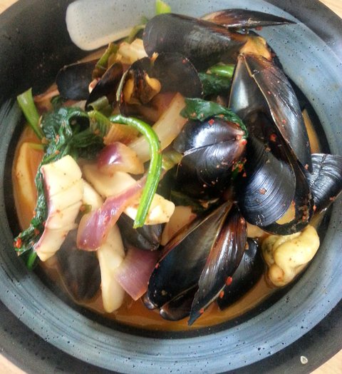 이건짬뽕인데 면없이 밥이랑같이 먹었어요. 홍합이 진짜싸더라고요 많이샀는데 2천원도 안해서지금도엄청 남아있어요ㅋㅋ 이제 국이란국에 홍합을 다넣어야할듯하네요