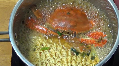 요즘 꽃게 철이라, 꽃게를 통째로 라면에 넣어 봤습니다.