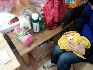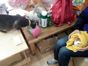 고양이들이 쥐냄새가 나는지 ..몽실이 이동장 주변으로 모이기 시작하네요 ![]()