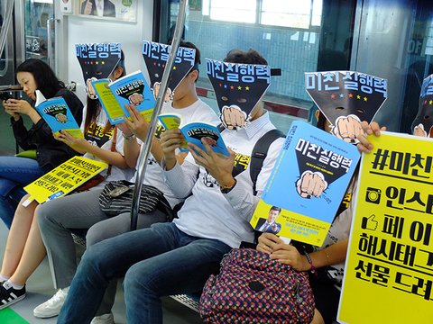 지하철 타고 오는데 이렇게 가면쓴 분들이 앉아서 책을 읽고 있네여