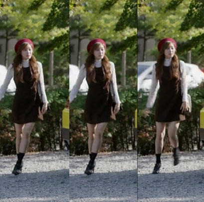 쿠론 가방에 원피스입고 개구쟁이 같은 귀여운 패션 완전 귀여움ㅋㅋ