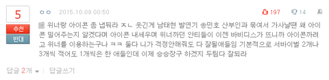 얘기를 하다보니 길어졌는데 위에 댓글짤처럼 위너깔땐 아이콘 이용하고 아이콘깔땐 무조건 위너를 앞세워서 깜 몇년후 어떻게 깔지 궁금해질정돜ㅋㅋㅋ 하여튼 정말 주기적으로 왜저렇게 심하게 까지?? 하는 마음이 들다가도 1~2년이 지나면 잠잠해지고 그 뒤에 새로뜨는 아이돌들이 과거의 순서대로 똑같이 까임 내가보기에 가수가 잘못했더라도 안티들이 물고 늘어지고 이빨 터는거에 비하면 새발의 피도 아님ㅋㅋ 그 그룹을 혹은 특정 멤버를 싫어하는 댓글들에선 패드립을 포함한 가수의 인성 인격 인신 모독하는 내용도 부지기수고 그걸 당연시하게 여김;;