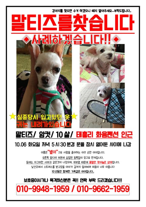 10월 6일 저녁 5시 30분 경 잠시 외출한 사이에 방충망 현관을 뚫고 나간것으로 추정됩니다..