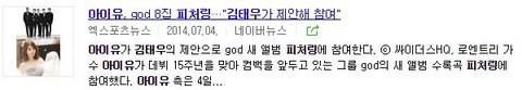 그리고 김태우분이 아이유한테 직접 콜라보를 제안하셔서 god 수록곡중에 '노래 불러줘요' 라는 곡의 피처링을 해줬고요
