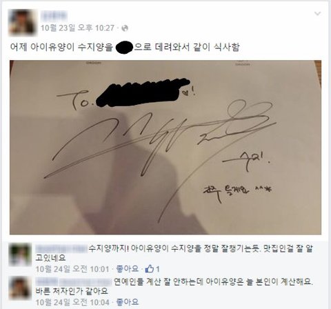 알만한 분들은 다 알듯이아이유는 평소에도 지인들 밥이든 비싼거든 잘 사주고 잘 챙기고 몰래 계산한 일화도 많아요