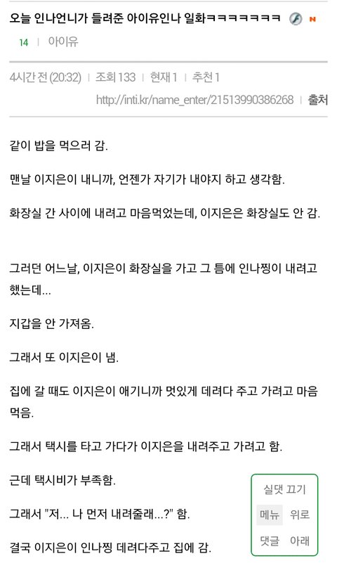 실제로 6년이라는 긴 시간동안 아이유를 좋아한 팬이 느낀건좋은 사람이고 안티분들이 말하시는것처럼 나쁜 사람이 아닙니다..ㅠㅠ
