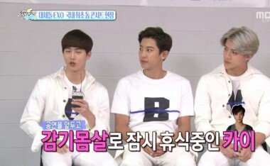 "카이씨는 지금 감기 몸살로 잠시 휴식중이에요.안정 취하고 있어요."
