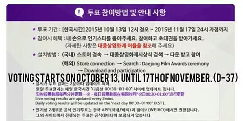 경수 대종상영화제 인기상 후보에 올랐음!! 13일부터 어플 통해서 투표 가능하대요~