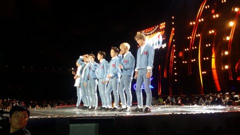 친구가 그라운드 27구역얻어서 같이갔는데 시작하고 조금뒤에 사람들이 앞자리로 옮기더라고 그래서 우리도 막 옮김 물론 빈자리로ㅇㅇ 막 옮기다보니 돌출에 있는 연옌 이목구비가 보일정도야 그래도 조금 멀었지만ㅋㅋ 그리고 엑소 나오니까 그라운드 앞쪽사람들 다 일어나더라ㅋㅋㅋ 뒷구역사람들이 다 앉으라고 소리쳐도 안앉아 시큐랑 경찰들도 뭐라고 했는디 말을 안들음ㅋㅋㅋ 으르렁할때 친구랑 앞구역 건너가려고 뒷구역 맨앞에서 경찰지키고 있길래 조카 불쌍한 표정지으면서 앞구역 뒷자리 의자에서 보면안되냐고 그랬는데 거기까지만 있으라고 해서 거기서 서서보다가 럽미라잇때 돌출로오니까 조카뛰어감ㅋㅋㅋ 돌출 펜스잡고봤는ㄷㅔ 징짜 잘보임ㅋㅋㅋㅋ 내인생에서 엑소 정말 가까이서봤다 심지어 클린버전이여서 대박이였닼ㅋㅋㅋㅋㅋ 카메라로 찍으니까 흔들리긴했는데 젤 잘찍힌걸로 올린다!