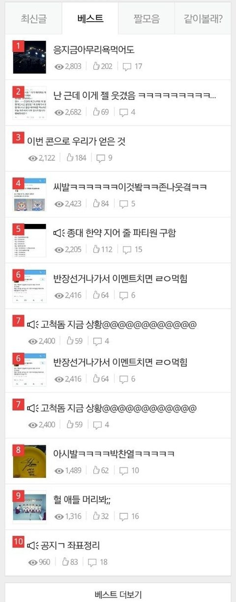 여기 슈팬소굴이라고 정치질하는 악개가 시우민글만 베톡오른것처럼 날조해서 정치질하고싶은가본데