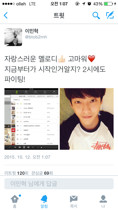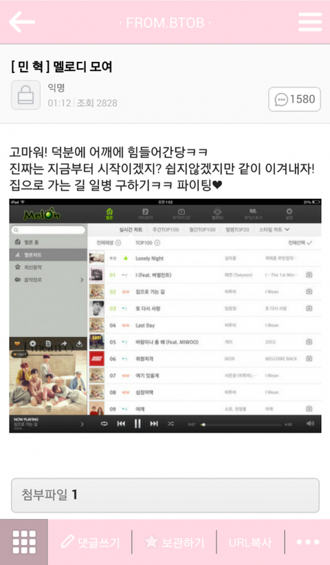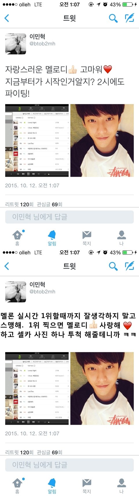 +) 멜퀴야 스밍독려글 올리면서 왜 셀카까지 같이 올리겠냐.. 당연히 '셀카 올릴테니까 셀카보고 힘내서 1위 만들어줘♥ 1위만들어주면 멜로디 사랑해 셀카 하나 더 투척해줄게' 이뜻이지 머가리딸리냐 ㅋㅋㅋㅋㅋㅋ
