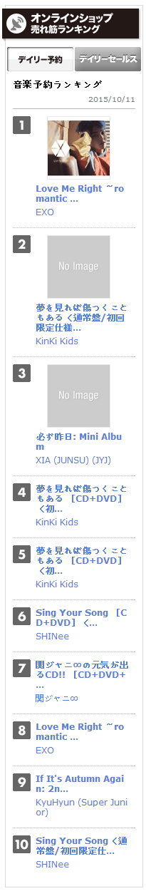 것도 종합차트 1위ㅋㅋㅋㅋㅋ 킨키보다 위라니 쩔어 엑소 10위권 안엔 1위 시우민이랑 8위 단체 초회랑 두개뿐임야 너네 이런거나 ㄷㅋ에 올려라 거긴 시우민 일본인기 없는줄 알드라 정치질 결과로ㅋㅋㅋㅋ