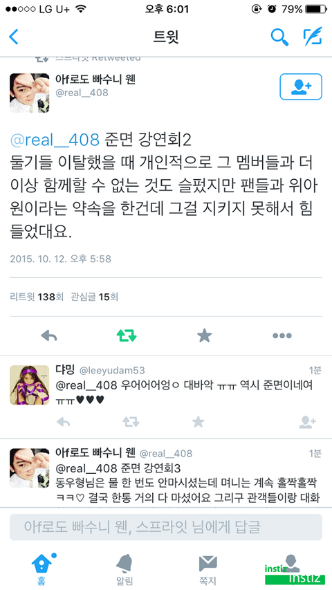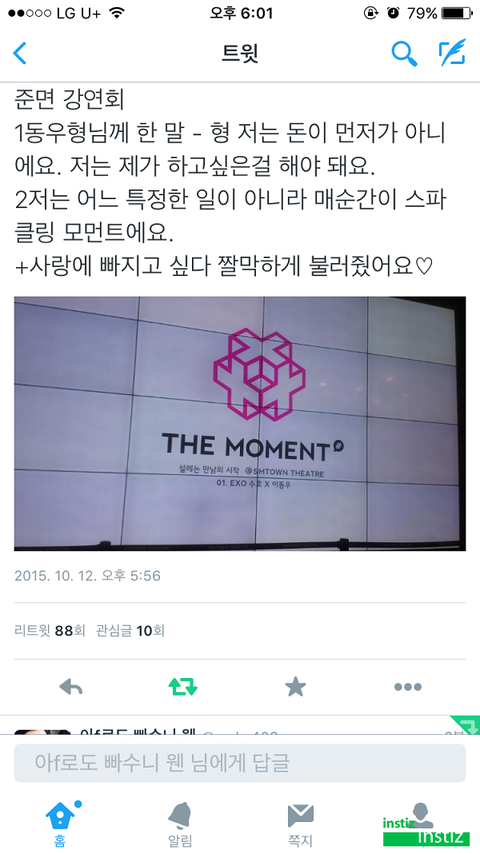 ㅋㅋㅋㅋㅋㅋ덕질하면서 운건처음임... 이제부터내좌우명은 매순간을즐겨라 매순간이 스파클링모먼트다 ㅅㅂ 준면아 시발 내가 어떻게 탈덕을 하겠니 너희들을 두고 둘기새끼들아 반성해 준면이인성 반만쳐닮아라 제발