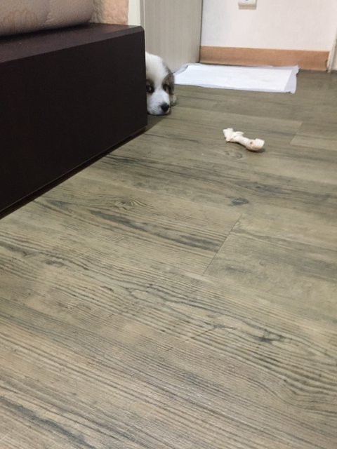이건 제 옷을 다 뜯어놔서 혼냈더니 삐져가지고 개껌도 버리고 침대뒤로가서 째려보는중...ㅋㅋㅋ