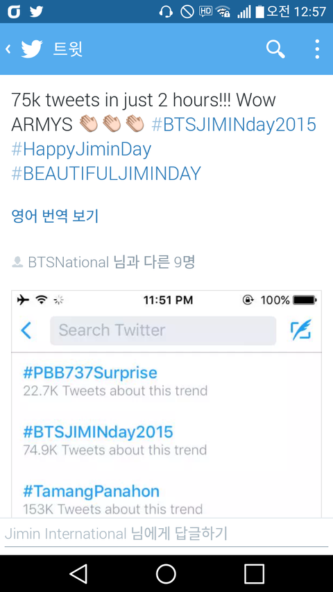 2시간만에 75k 트윗이래.. 대박 ㅋㅋㅋㅋ