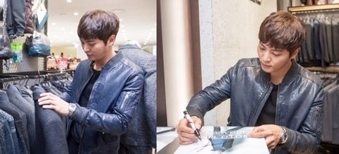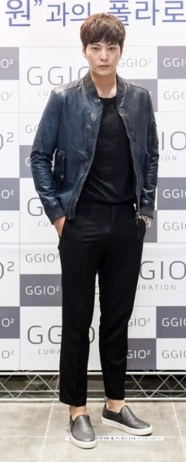 가죽 블루종 자켓 입고 등장했는데